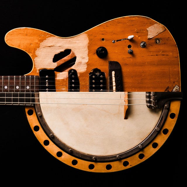 Vintage banjos, electric and 12-string guitars, and cassette recordings